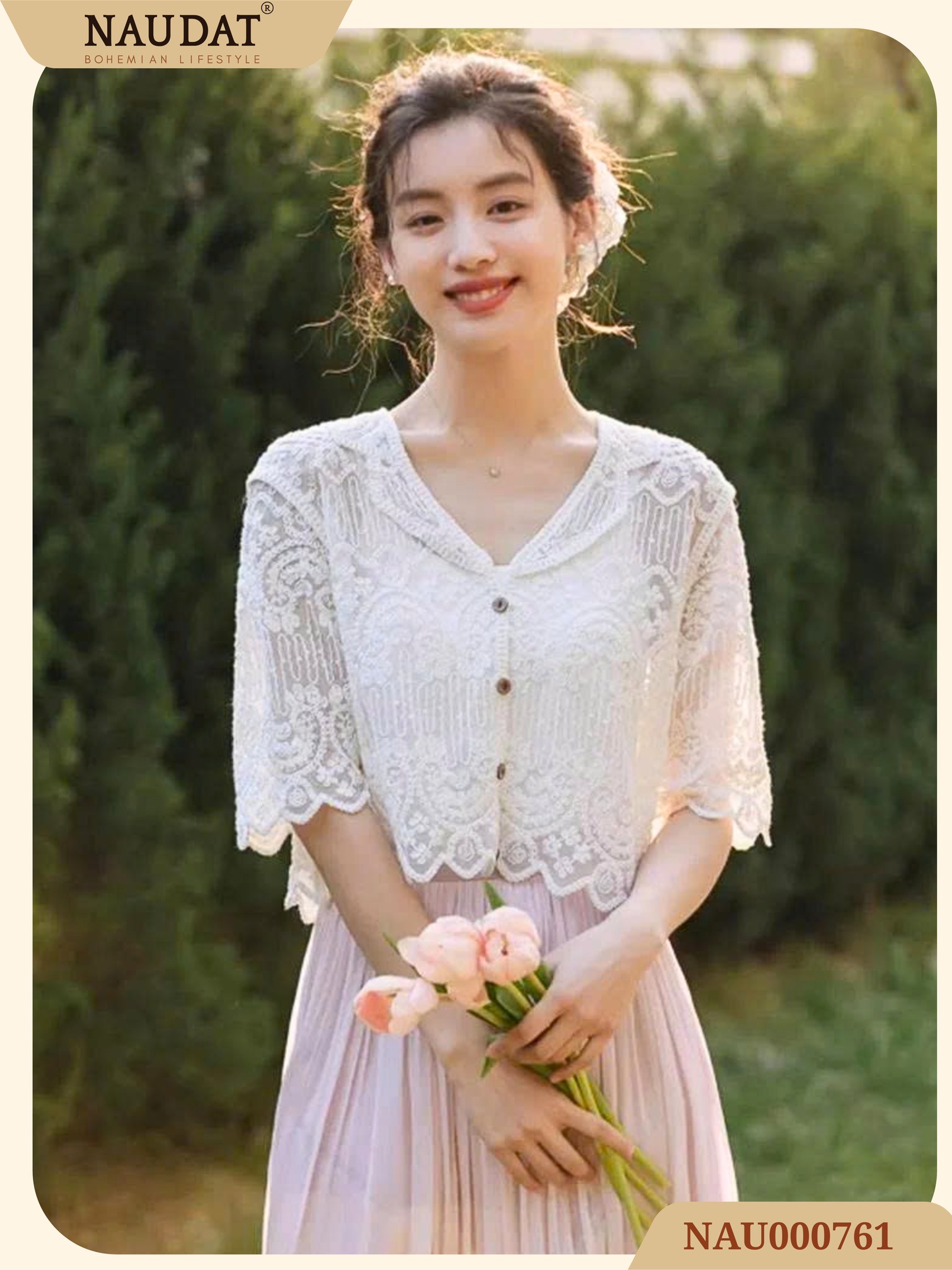 - Họa tiết ren tinh tế, mang lại vẻ đẹp nhẹ nhàng nhưng không kém phần nổi bật.