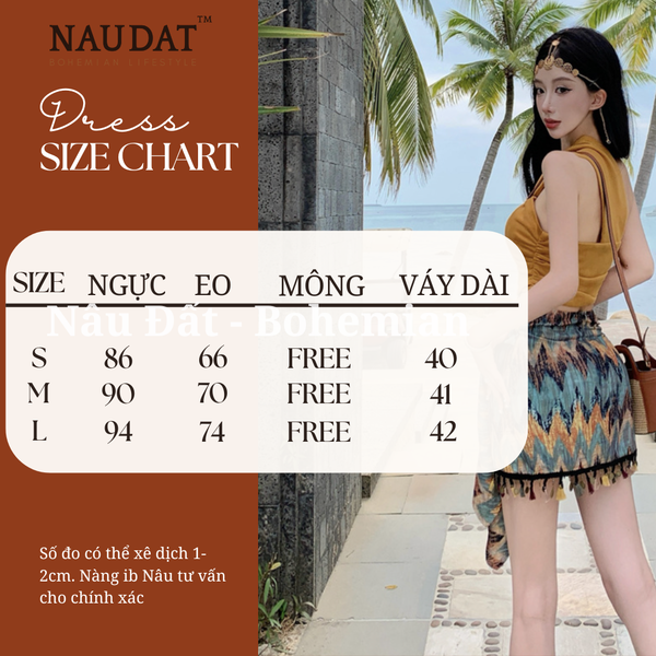 Thiết kế mang đậm hơi thở bohemian với các chi tiết vải tua rua, họa tiết thổ cẩm, kết hợp cùng màu sắc hoang dã của thiên nhiên, giúp bạn tự tin tỏa sáng trong mọi chuyến đi.