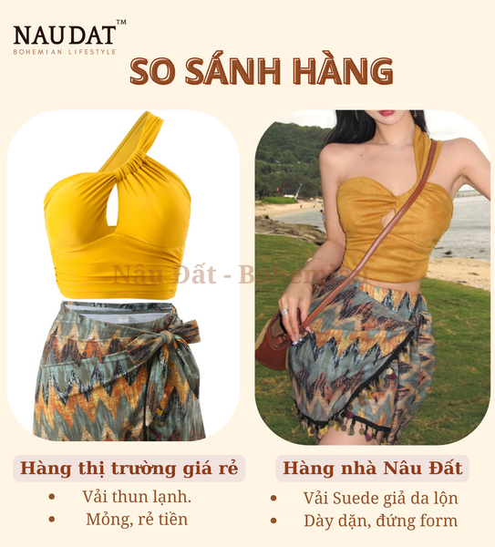 • Phụ kiện phù hợp: Hoàn thiện set đồ bằng một chiếc túi cói handmade, kính râm tròn mang phong cách retro và hoa tai tua rua để tăng thêm chất du mục. Nếu muốn tạo điểm nhấn cá tính hơn, có thể phối cùng boots da lộn thấp cổ hoặc sandals dây mảnh.