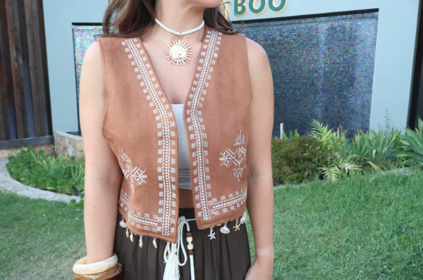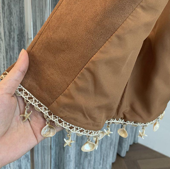 Với chất liệu da lộn mềm mại, ấm áp và tôn dáng, chiếc gile là lựa chọn hoàn hảo cho những chuyến dạo phố, picnic cuối tuần hay những buổi du lịch giữa tiết trời se lạnh. Đây sẽ là món đồ không thể thiếu trong tủ đồ của những cô gái yêu phong cách bohemian cổ điển pha chút hoang dã, vừa nhẹ nhàng, vừa đầy sức hút.
