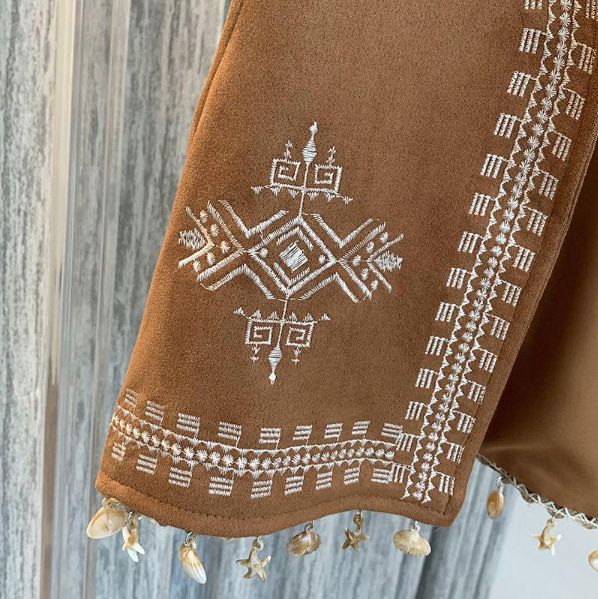 - Họa tiết thêu bohemian nhẹ nhàng ở phần thân trước giúp tổng thể thêm hài hòa.