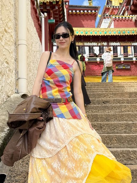 - Phối cùng váy maxi trắng/kem để làm nổi bật áo