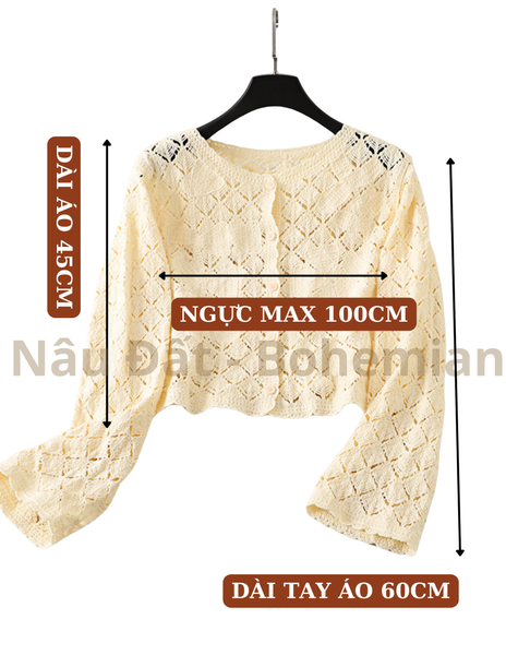 Áo Cardigan Len Móc Hoa Văn mang phong cách nữ tính, thanh lịch và hiện đại. Thiết kế nhẹ nhàng với các họa tiết đan móc tinh tế, giúp nàng dễ dàng phối đồ và thể hiện phong cách riêng biệt.