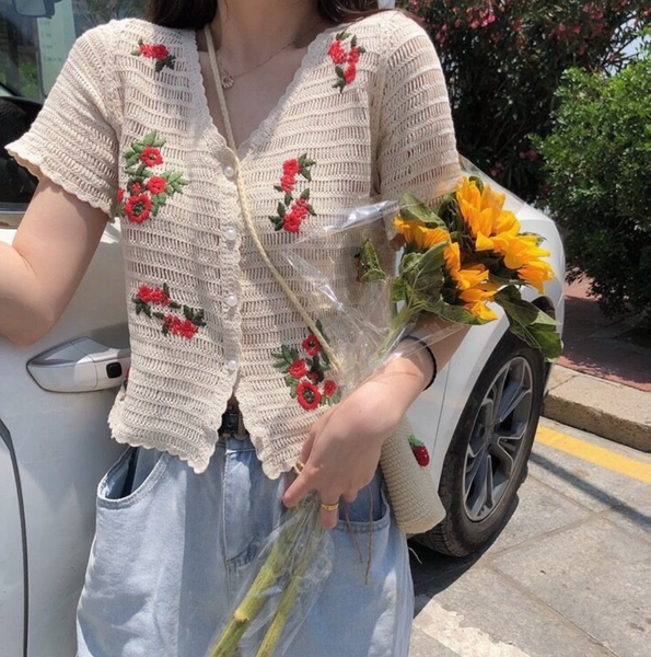 Áo Len Thêu Hoa Đỏ – Sự Kết Hợp Giữa vibe vintage x mori girl