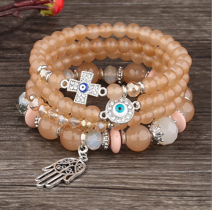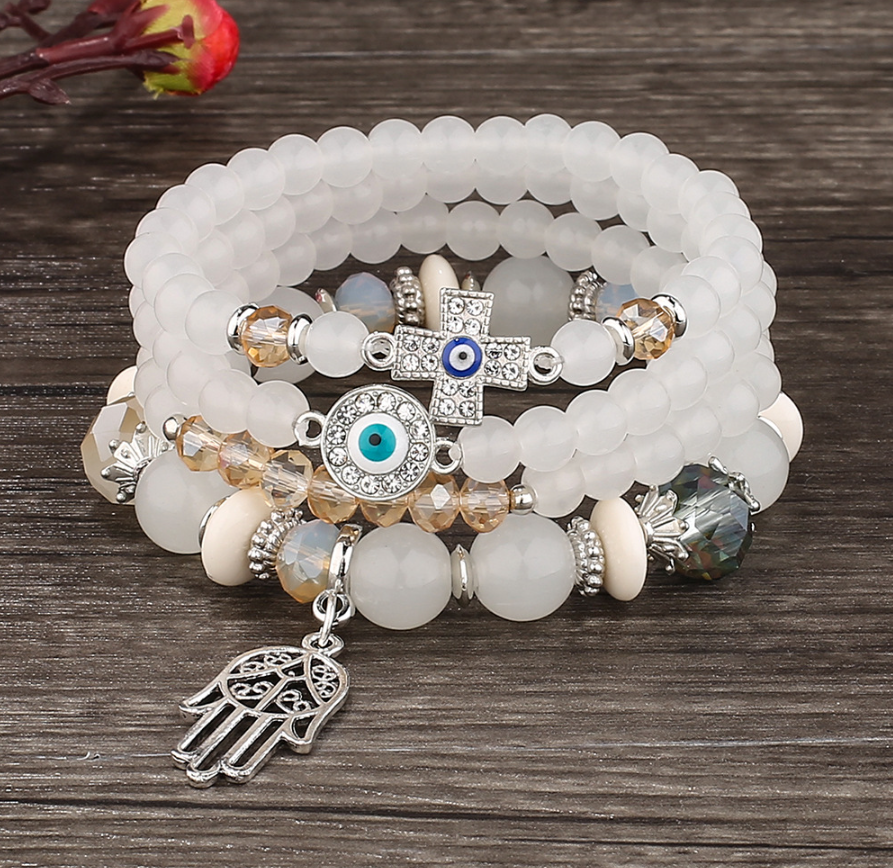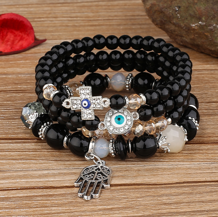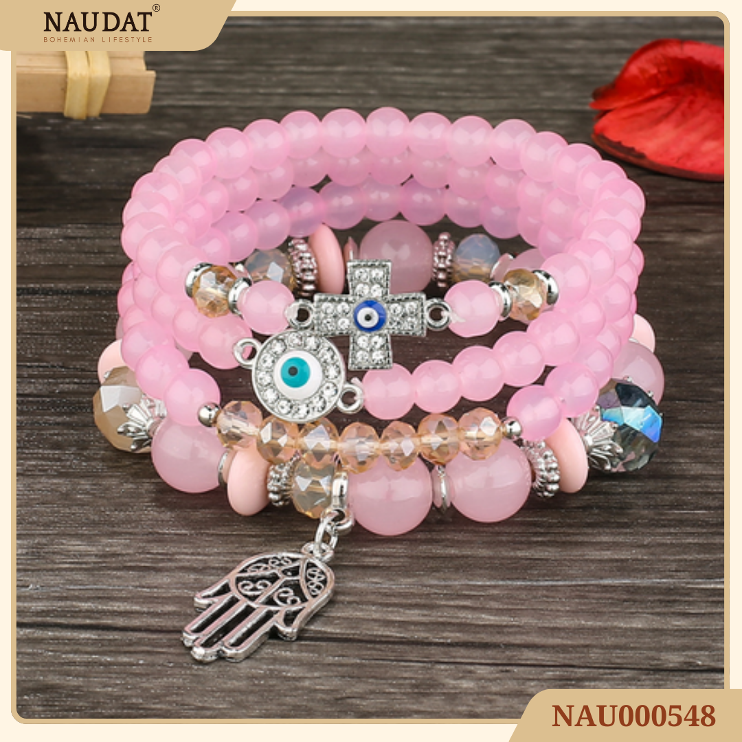 Bộ lắc tay đá phong thủy là phụ kiện không chỉ tôn lên vẻ đẹp thanh lịch mà còn mang đến năng lượng tích cực cho người đeo. Được chế tác từ những hạt đá tròn mài nhẵn, kết hợp charm mắt thần hộ mệnh và bàn tay Fatima, sản phẩm mang ý nghĩa bảo vệ – may mắn – bình an.