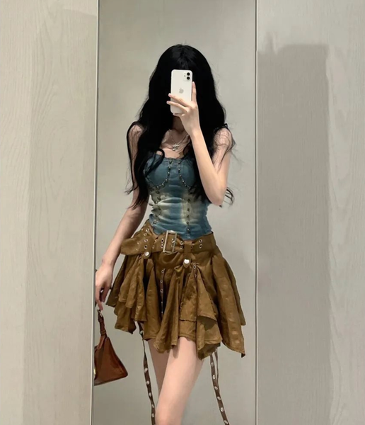 - Kết hợp cùng áo croptop, áo jeans hoặc corset để tạo vẻ ngoài quyến rũ.