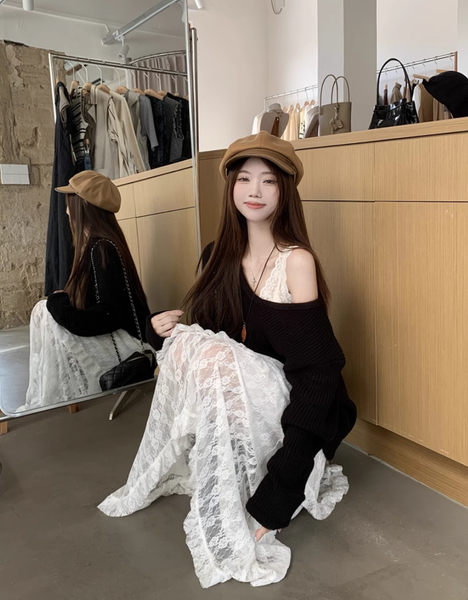 Lớp ngoài: Chất ren cao cấp với hoạ tiết tinh tế, tạo hiệu ứng xuyên thấu nhẹ nhàng nhưng không quá hở hang, giúp bạn trông quyến rũ mà vẫn thanh lịch.