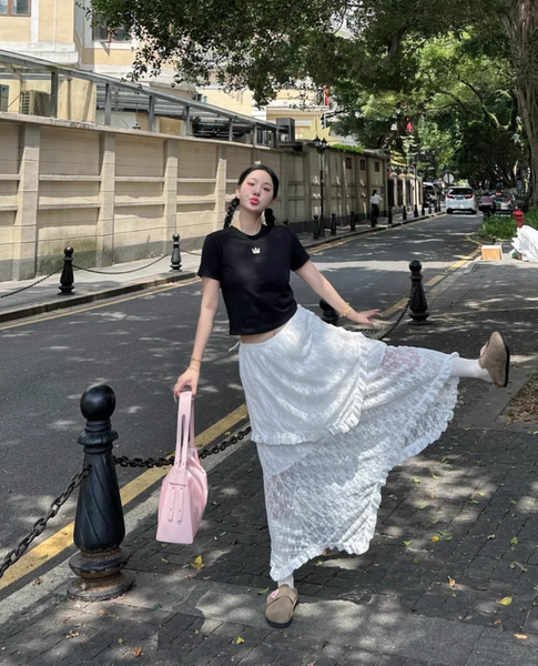 Chân váy ren hai lớp là item không thể thiếu trong tủ đồ của những cô nàng yêu thích phong cách nữ tính, thanh lịch nhưng vẫn có nét phóng khoáng hiện đại.