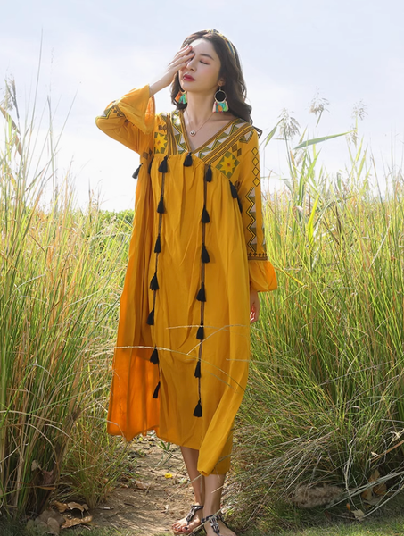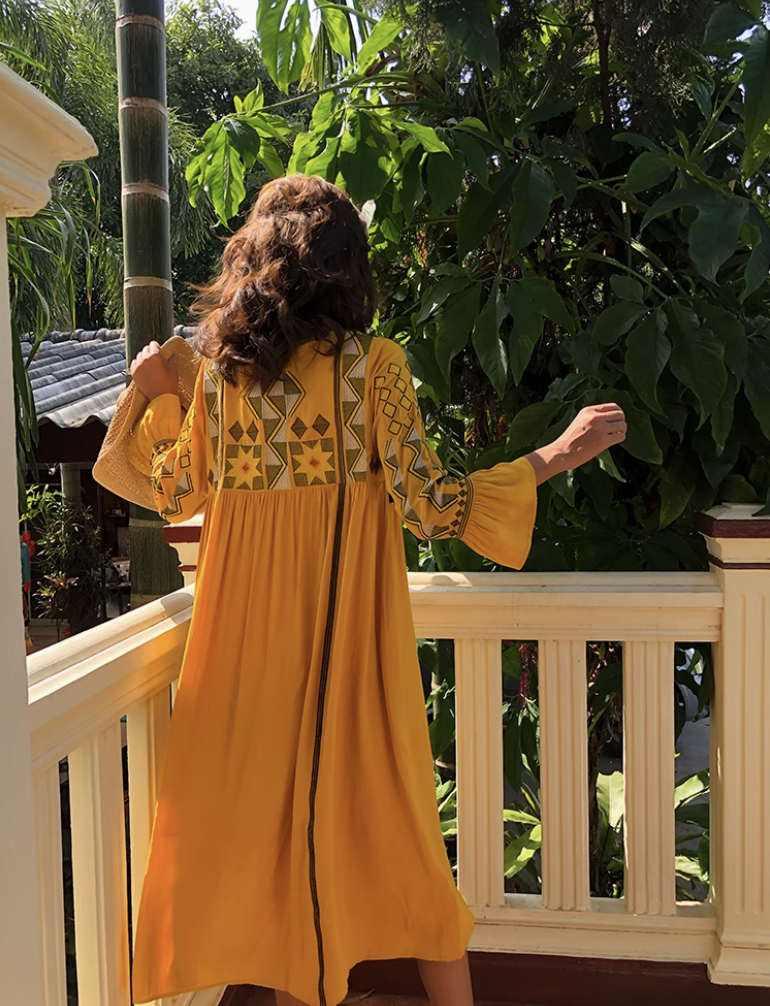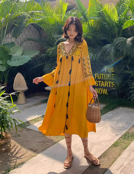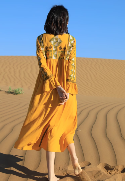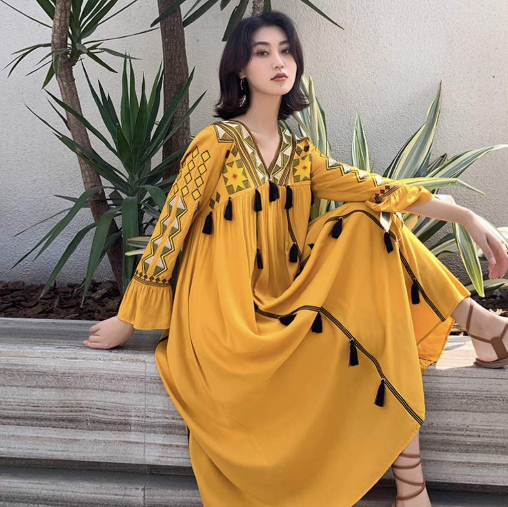 Đầm Boho Thêu Ngực Tay Dài - Vẻ Đẹp Tự Do & Nghệ Thuật