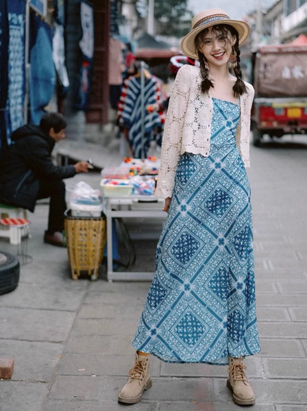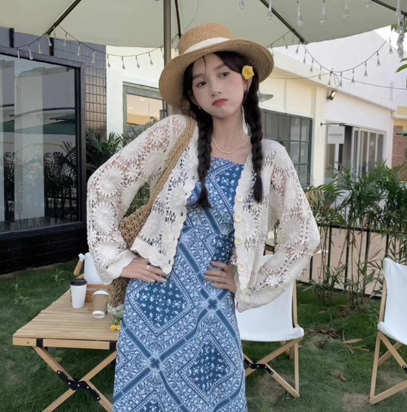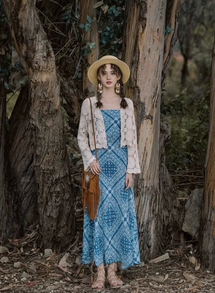 Phối kèm áo khoác len móc hoặc kimono để tăng vẻ boho chic.