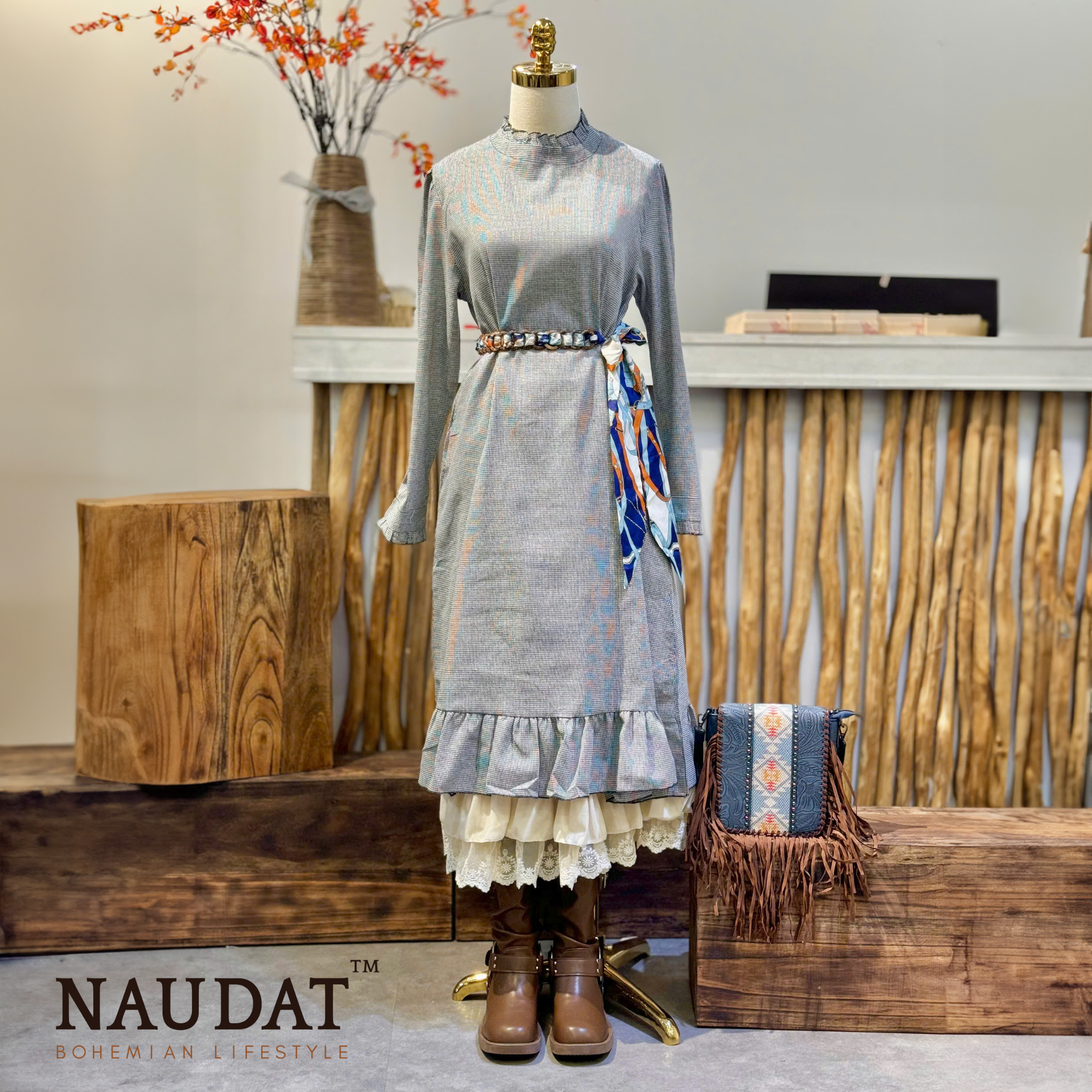 Ashen Weave là chiếc đầm lý tưởng cho những ngày se lạnh, những buổi dạo phố lặng lẽ hoặc những khoảnh khắc yên bình bên tách trà chiều. Dù là một cô gái yêu thích sự trầm lắng hay một tâm hồn hoài cổ, chiếc đầm này sẽ là người bạn đồng hành hoàn hảo, mang đến cảm giác ấm áp và an yên trong từng bước chân.