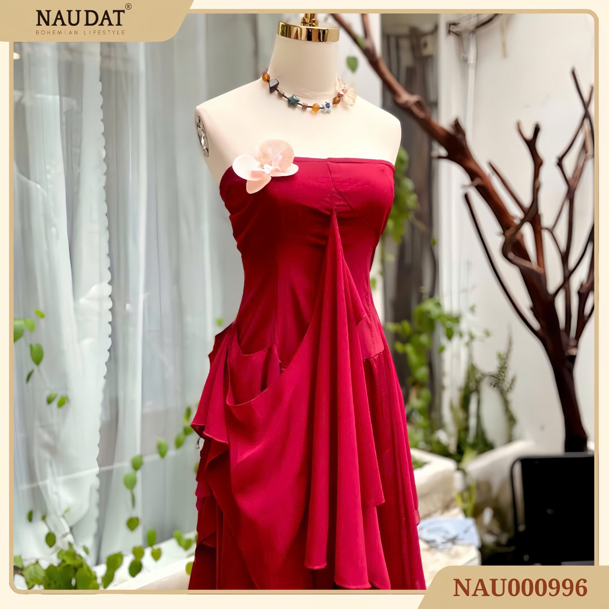 Đầm Thiết Kế Đỏ Boho Quyến Rũ – NAU000996 | NAUDAT Bohemian Lifestyle