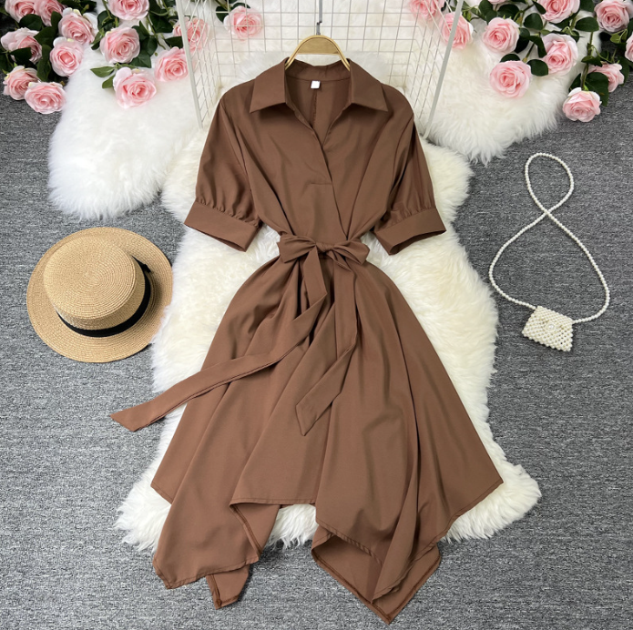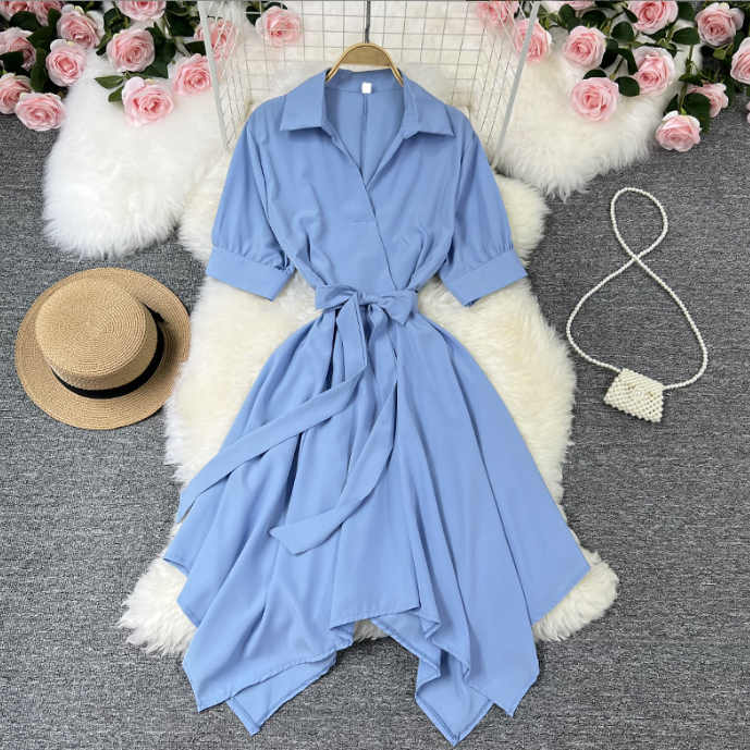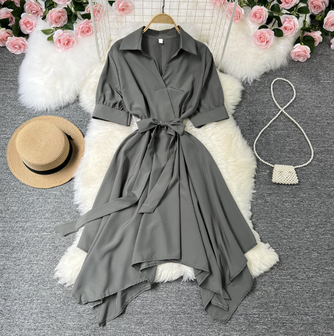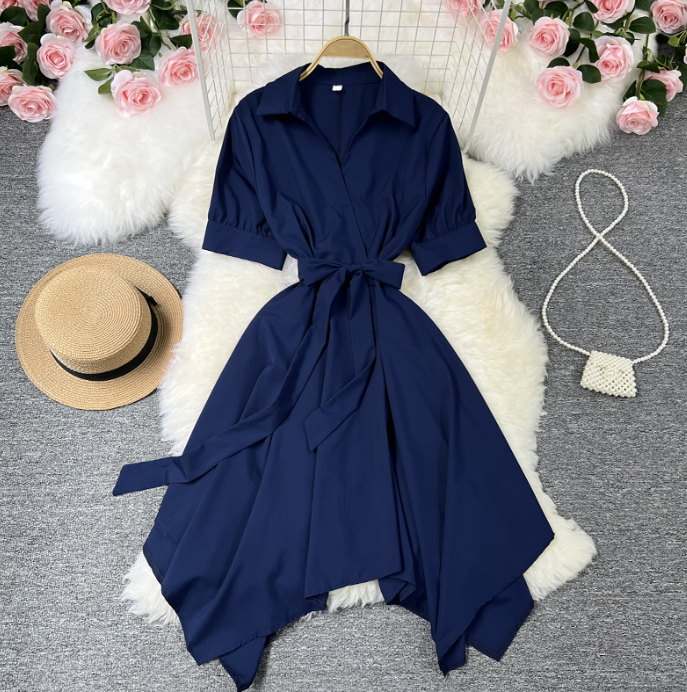 Form dáng: Dáng chữ A nhẹ, bo eo vừa phải, phần chân đầm nhọn xéo tạo hiệu ứng chân dài và lạ mắt.