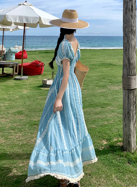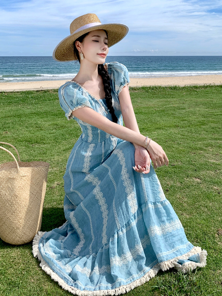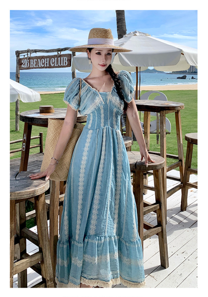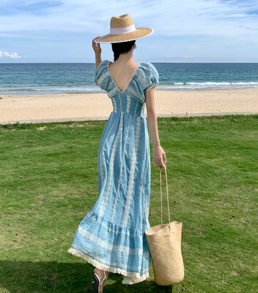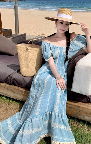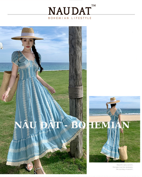 Mùa hè 2025 đang đến gần, và nếu có một item thời trang nhất định phải có trong tủ đồ du lịch của nàng, thì đó chính là chiếc đầm maxi Bohemian xanh pastel đầy quyến rũ này!