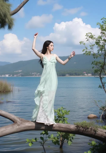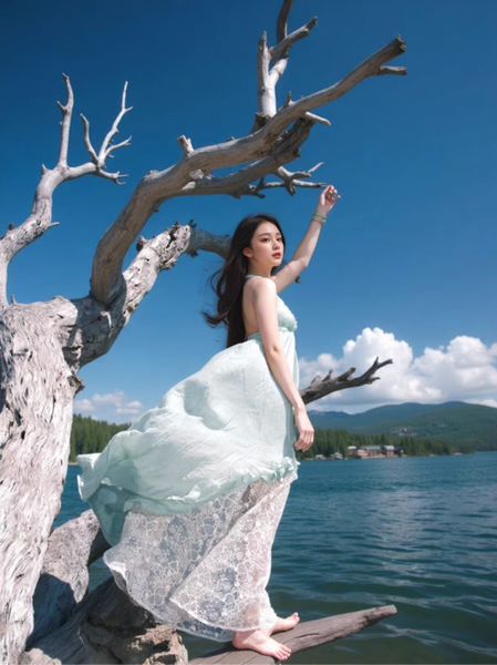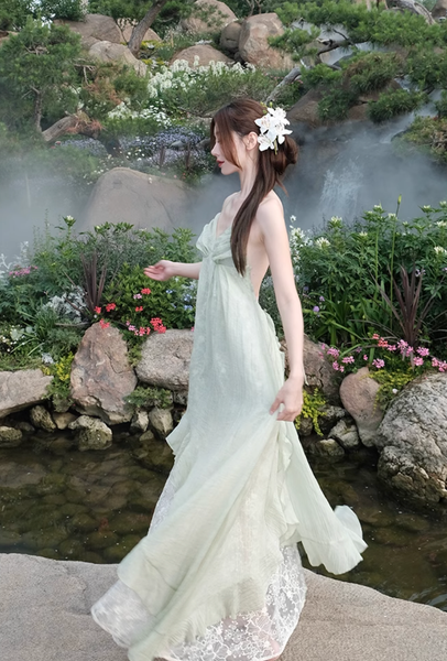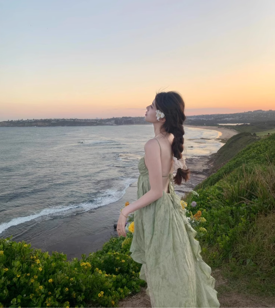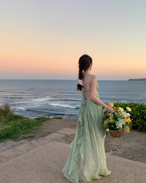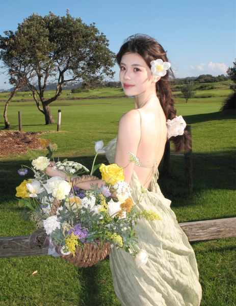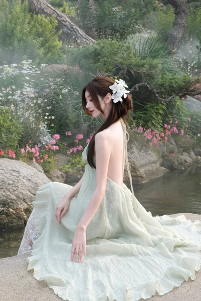 • Để giữ trọn vẻ mộng mị và huyền bí, hãy kết hợp đầm với một đôi sandal dây mảnh hoặc đi chân trần trên nền cỏ xanh. Một chiếc vòng cổ ngọc trai hoặc chuỗi dây bạc thanh mảnh sẽ là điểm nhấn tinh tế, tựa như những giọt sương đang khẽ rung động dưới ánh sáng.