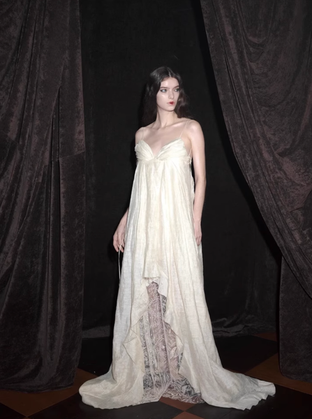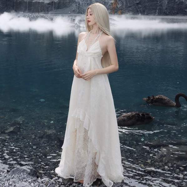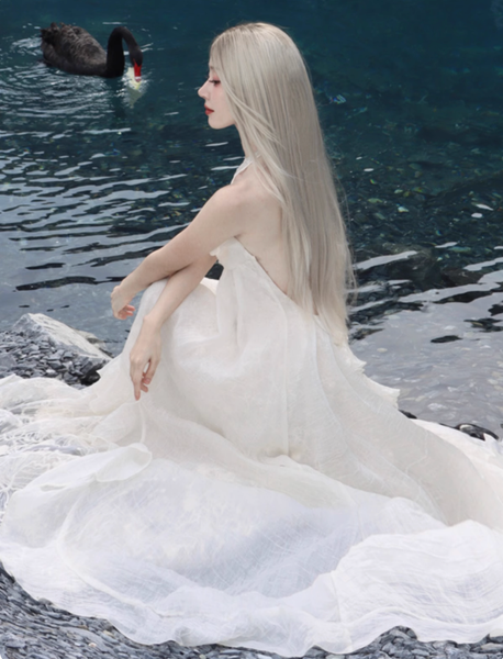 Chiếc đầm Mystic Dew là hiện thân của sự thanh thoát và nhẹ nhàng, như thể được dệt nên từ những giọt sương trong trẻo. Lớp vải trắng ngà mang đến cảm giác tự nhiên, nguyên bản, nhưng vẫn toát lên sự sang trọng một cách tinh tế.