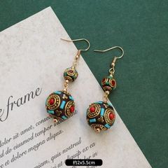 Hoa Tai Nepal mặt khối tròn