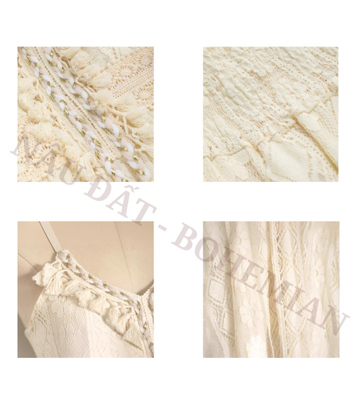 Chất liệu voan ren cao cấp, kết hợp lớp lót êm mịn mát, tua rua bung xòe