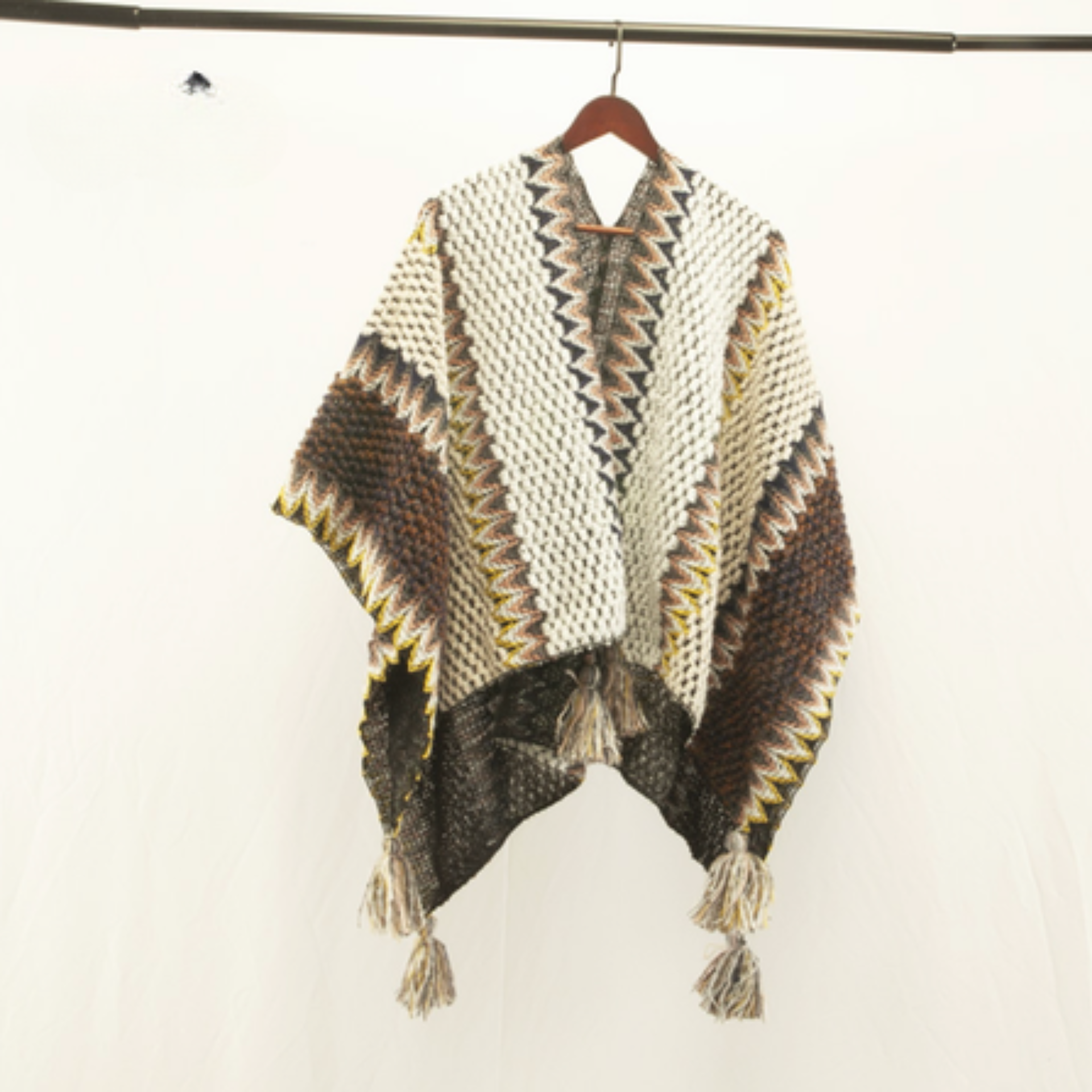Chất liệu: Được dệt từ len mềm cao cấp, chiếc áo poncho mang lại cảm giác ấm áp, thoải mái nhưng vẫn nhẹ nhàng như gió vùng cao.