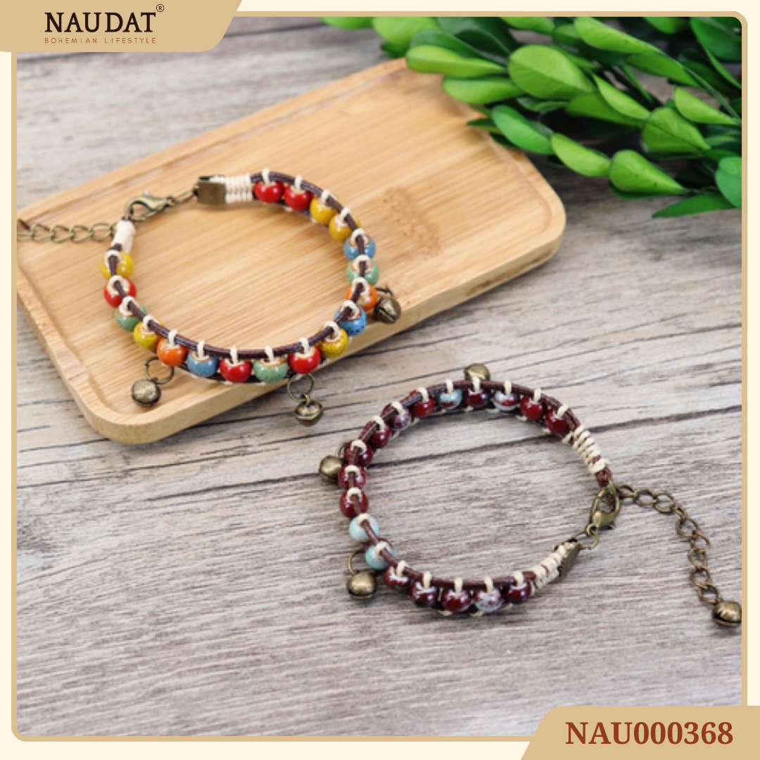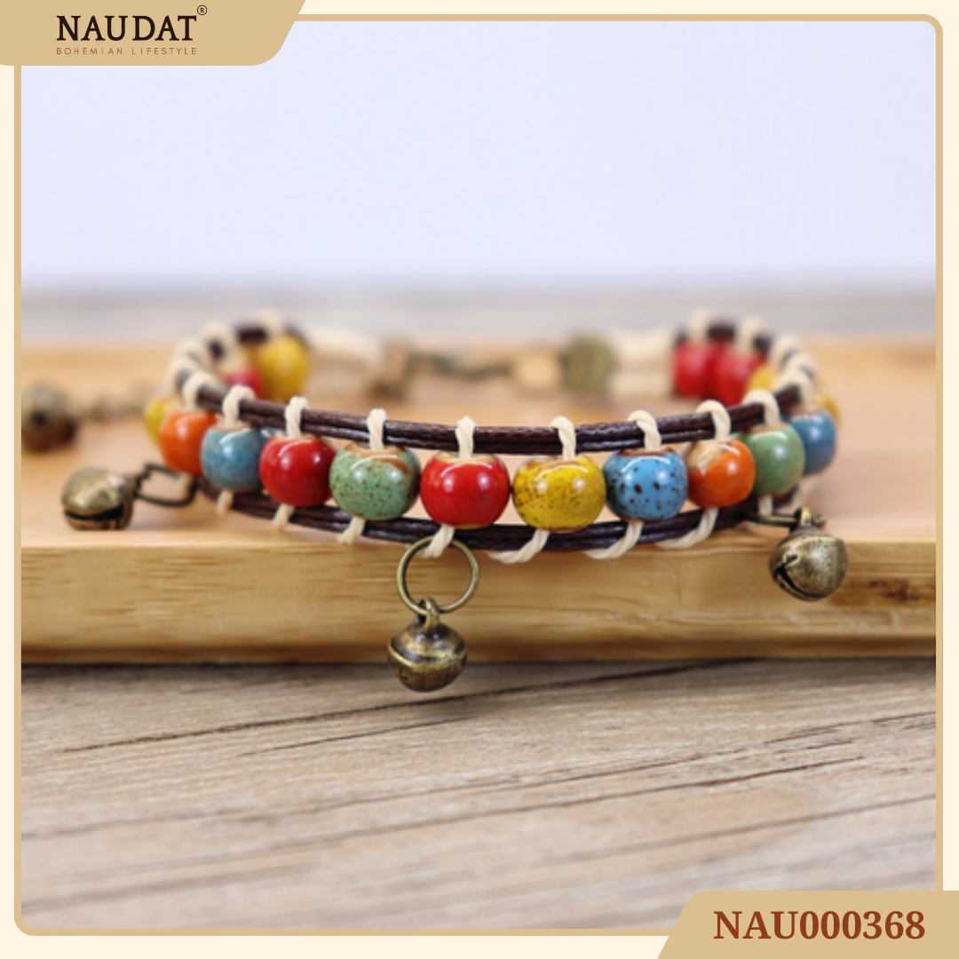 Chất liệu: Hạt gốm nung, dây sợi bện, chuông kim loại