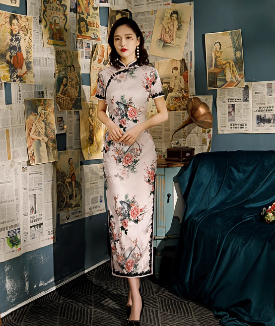 Sườn Xám Hồng Viền Ren Đen – Dịu dàng pha nét kiêu kỳ