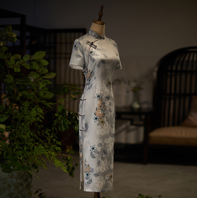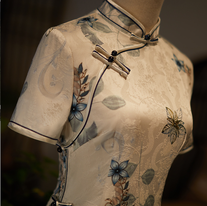 Sườn Xám Lụa Gấm Xanh Kem – Thanh lịch, tinh tế và đậm chất Á Đông
