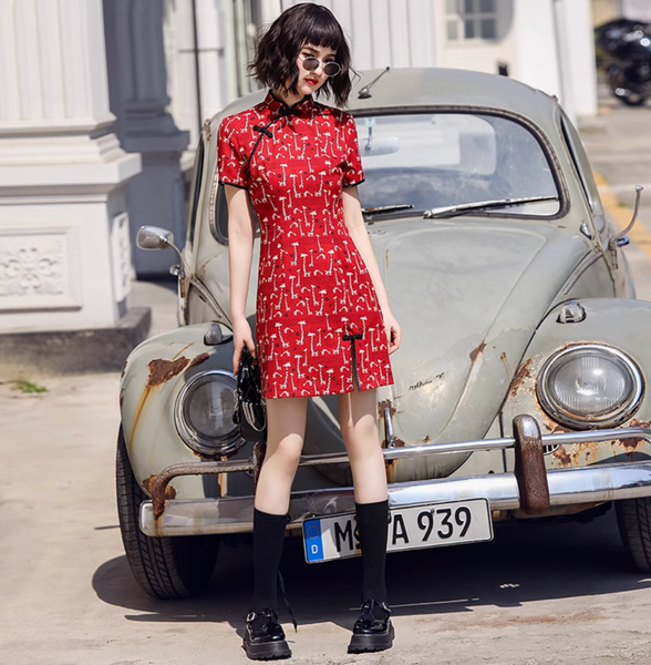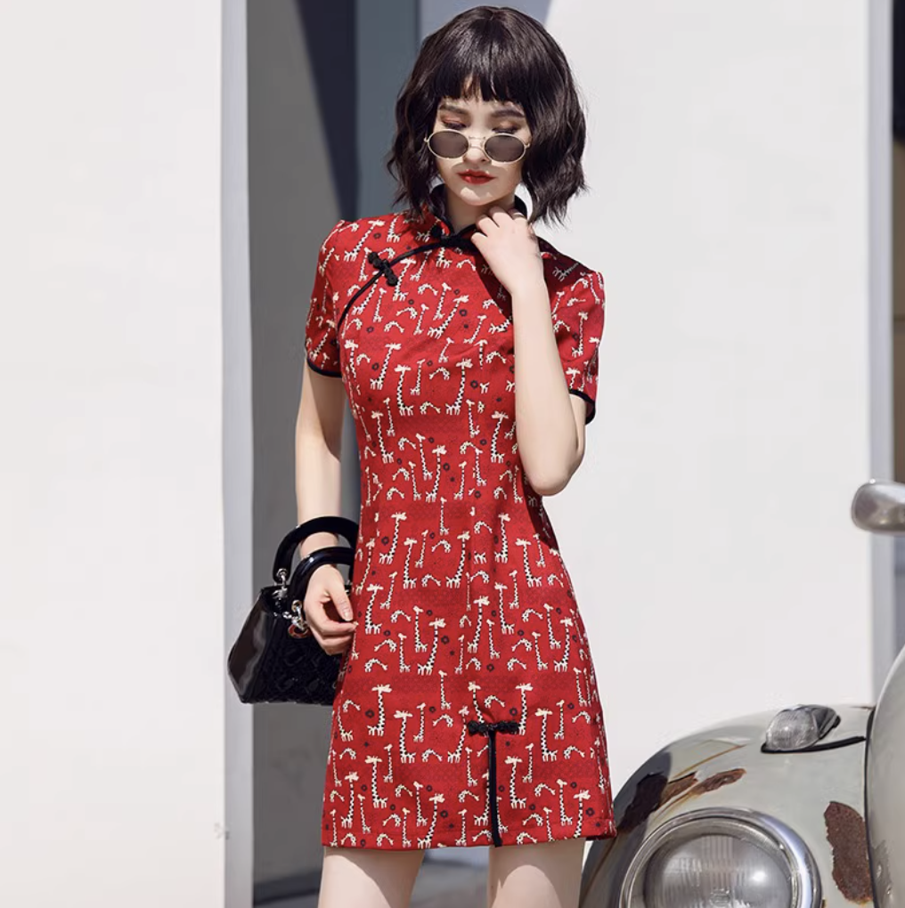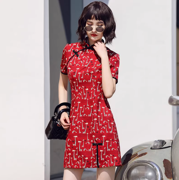 Sườn xám hưu đỏ là sự kết hợp độc đáo giữa phong cách truyền thống và xu hướng thời trang hiện đại. Với tông màu đỏ rực rỡ làm chủ đạo, chiếc váy mang đến sự nổi bật, may mắn và đầy cá tính. Họa tiết hươu trắng trải đều trên nền vải, tạo điểm nhấn trẻ trung nhưng vẫn giữ được nét thanh lịch vốn có của sườn xám.