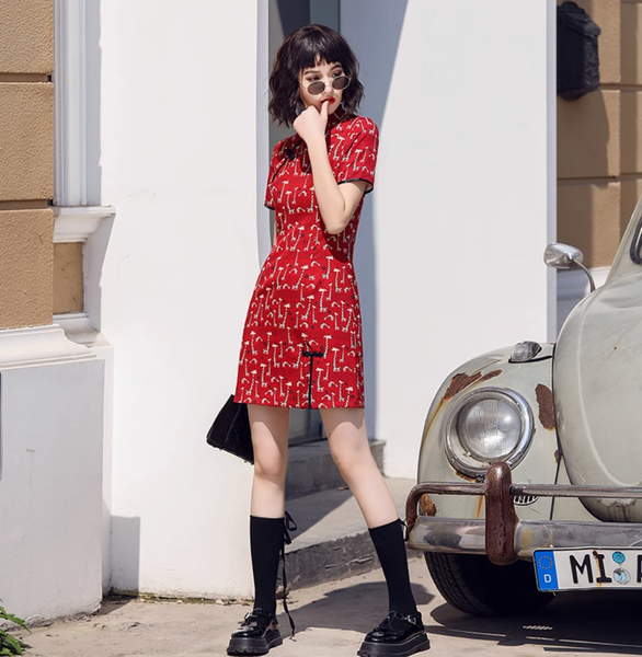 ✔ Thiết kế phá cách: Sườn xám dáng ngắn, trẻ trung nhưng vẫn giữ được đường nét truyền thống.