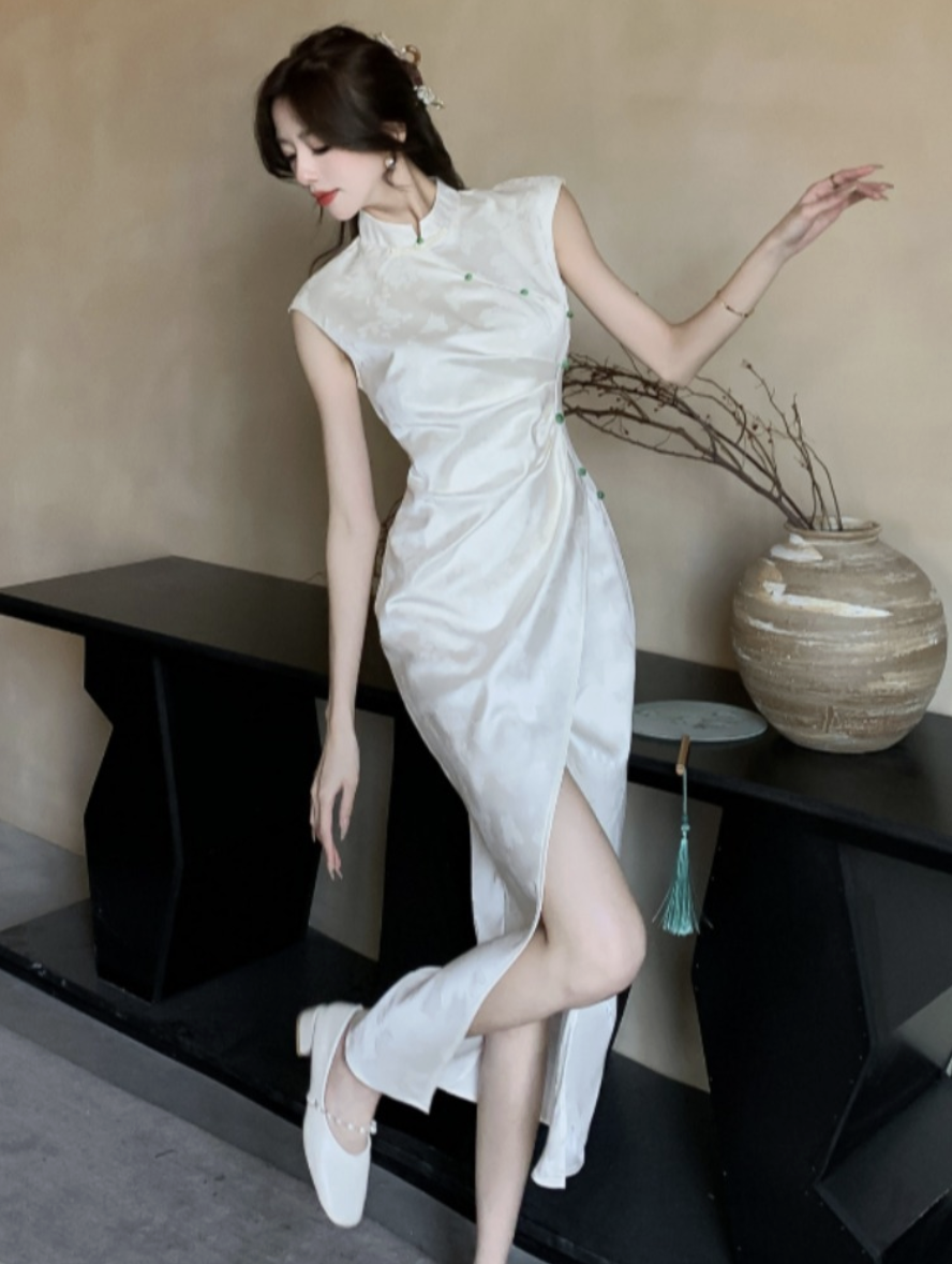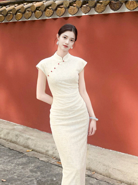 - Form sườn xám cổ cao, tôn dáng thanh mảnh