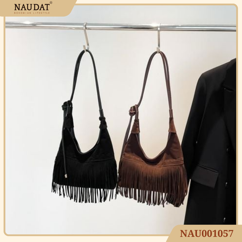 Một thiết kế túi đeo vai phong cách Boho cổ điển, với phần tua rua cá tính cùng dáng túi tròn mềm mại. Kalia không chỉ là điểm nhấn cho bộ trang phục mà còn là bạn đồng hành lý tưởng trong những hành trình sống chậm và tự do.
